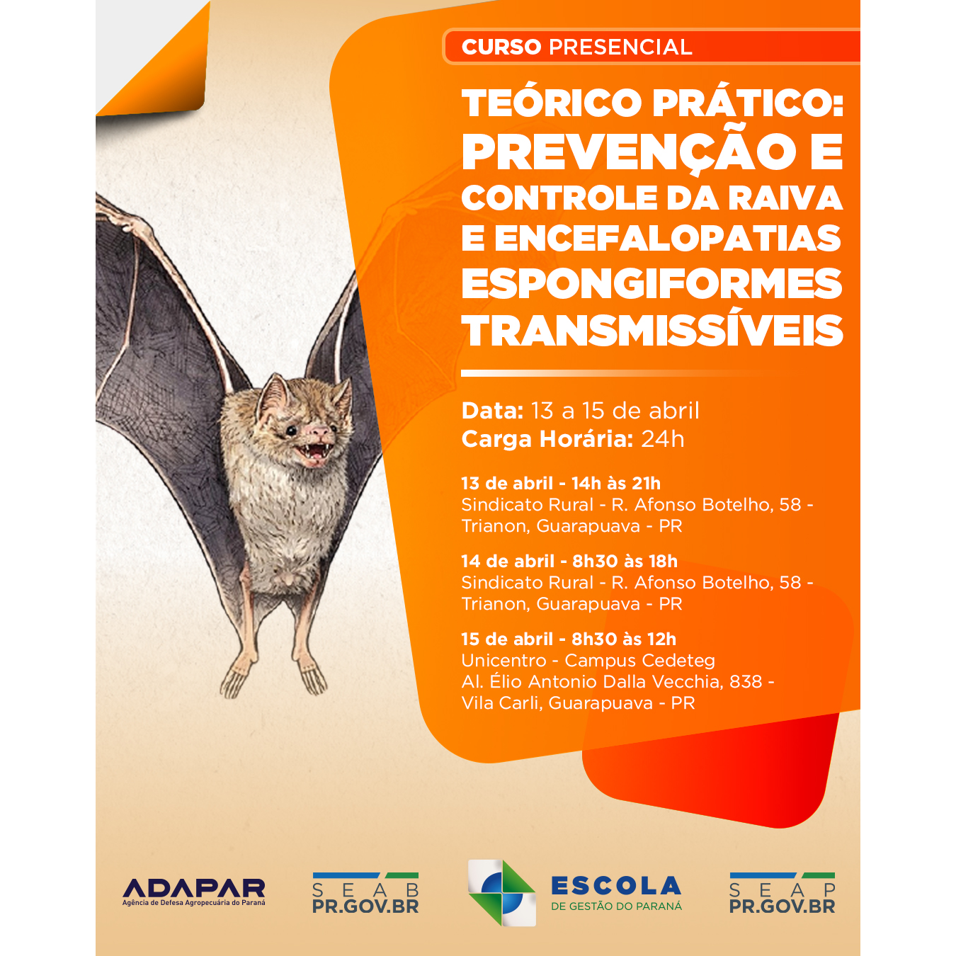 Objetivo Geral: Treinar novos servidores da Adapar com atividades teóricas e práticas da Divisão de Prevenção e Controle da Raiva e EET.
